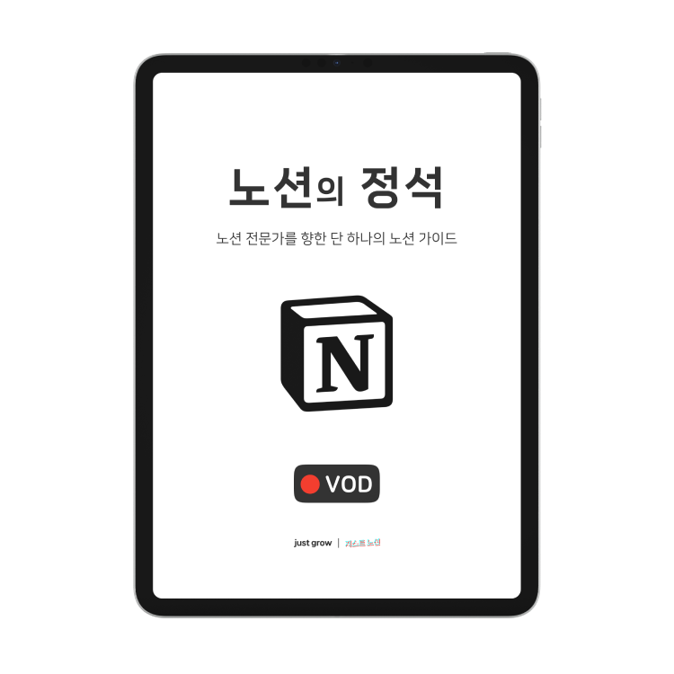 400페이지 이상 분량의 전자책과 32개의 VOD. 노션 엠버서더 저스트그로우가 직접 제작했습니다.