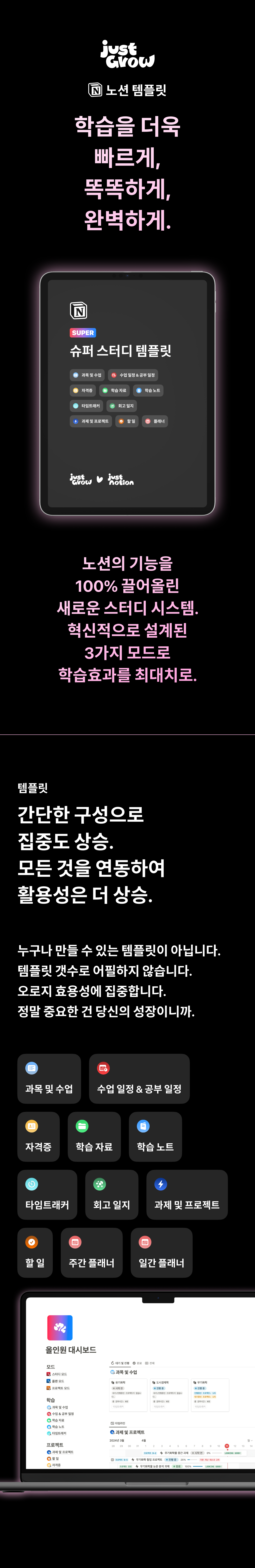 본 제품은 저스트 그로우의 창작물로, 구매자 본인만 사용할 수 있습니다. 타인과 공유, 재판매, 무단 배포, 수정 후 재배포 등은 금지되어 있으며, 위반 시 법적 조치(민•형사상 손해배상 및 처벌)가 이루어질 수 있습니다.
